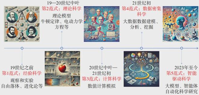 人工智能,特别是大模型技术,正在催化一场名为“第5科研范式”的根本性变革。这一范式的核心是从“人类主导”转向“人机协同”,它重构了科研全流程,旨在突破人类认知局限,极大提升科研效率与创新能力,最终塑造一个人类与AI各展所长、协同进化的未来科研新生态。