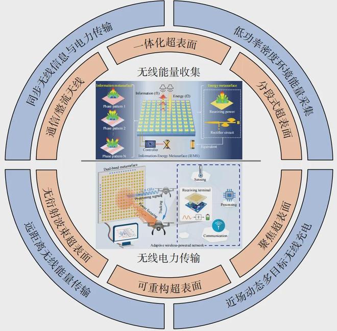 为解决物联网设备面临的供电瓶颈,超表面技术凭借其强大的电磁波束调控能力,正推动无线输能技术向高效率、小型化和智能化方向发展。文章系统阐述了其在能量发射、接收、能信同传以及动态可重构四大方面的最新进展: